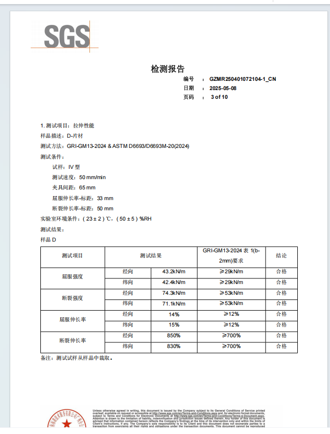 hdpe土工膜的技术指标符合ASTM-GRIGM13